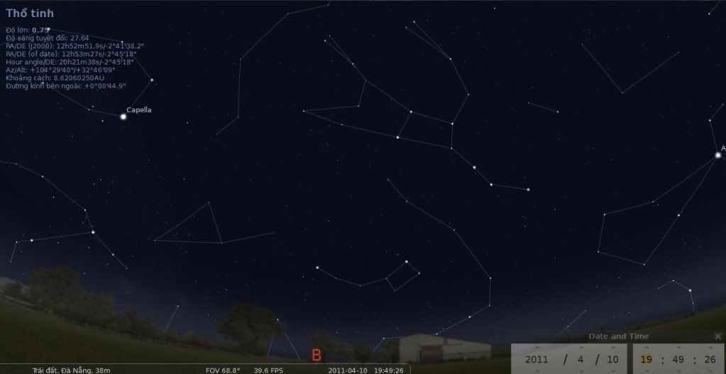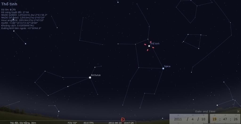 Bạn sẽ thấy gì khi quan sát bầu trời ngày 10/4 (Dự kiến đêm quan sát của PAC sắp tới) ? Nhìn về phía Bắc: ![]() [JUSTIFY]Ursa Major và Ursa Minor luôn là đối tượng đáng quan tâm khi nhắc tới bầu trời phương Bắc. Với ngôi sao Bắc Cực - Polaris được dùng để xác định hướng Bắc. Tuy với độ sáng biểu kiến khá mờ (1.95) nhưng có thể tìm thấy dễ dàng dựa trên đường nối dài của 2 ngôi sao thuộc chòm Ursa Major.[/JUSTIFY] Nhìn về hướng Đông: ![]() Bootes (Mục Phu) và Virgo (Trinh Nữ). Dần dần hiện lên từ hướng đông Virgo rất đáng chú ý với những ai sinh ra nằm trong cung Hoàng Đạo này.[/JUSTIFY] Thổ Tinh ![]() [JUSTIFY]Vừa mới đi qua vị trí đối lập 1 tuần trước. Thổ Tinh hiện vẫn chưa giảm bớt vẻ tráng lệ với biệt danh "Chúa tể những chiếc vòng". Hãy dùng một chiếc kính thiên văn tốt và tìm nó bên trong chòm Virgo.[/JUSTIFY] Quay mặt về hướng Tây ![]() Sau khi Mặt Trời đã xuống khỏi đường chân trời. Bạn có thể thấy lục giác mùa Đông cùng với Mặt Trăng dần dần xuất hiện. Đây có thể là khoảng thời gian cuối cùng bạn có thể qua sát được Lục Giác mùa đông trong hàng tháng tới. Hãy tận dụng và đừng bỏ qua cơ hội này nhé.[/JUSTIFY] Ngước nhìn lên sâu thẳm bầu trời ![]() Chú sư tử Leo cũng là một đối tượng không thể bỏ qua nếu bạn có ý định quan sát vào tối nay. M65, M66, và NGC 3628 là "bộ ba Leo" nổi tiếng - một nhóm thiên hà "đáng yêu" có thể dễ dàng nhìn thấy bằng kính viễn vọng. Hãy khám phá bầu trời và đừng quên đi cùng với chúng tôi nhé![/JUSTIFY] Vantan169_PAC |