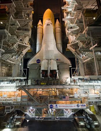 Cơ quan Hàng không và Vũ trụ Mỹ (NASA) vừa hoàn tất việc di chuyển tàu Endeavour vào bệ phóng, bắt đầu cho sứ mệnh tàu con thoi đầu tiên trong năm nay và cũng là một trong năm chuyến bay tàu con thoi cuối cùng trước khi đội tàu này hết hạn sử dụng, theo Reuters.