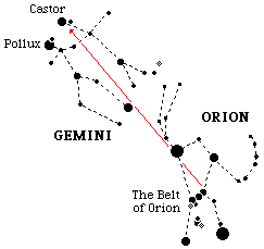 Làm thế nào để xác định được chòm sao Orion? Hãy nhìn lên bầu trời, ở hướng đông, hãy ngước mắt tìm một chàng trán sỷ có cái khiên và cây kiếm.. Bạn dễ dàng xác định được Orion thông qua ba ngôi sao thẳng hàng như trong hình vẽ... ba ngôi sao này chính là chìa khóa cho bạn xác định được Orion ở đâu.