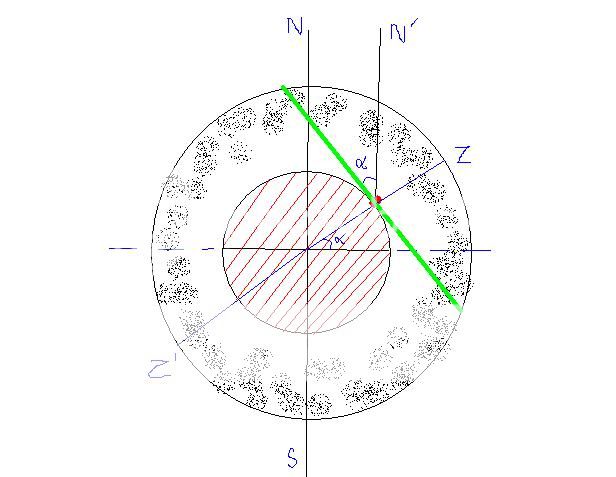 trên hình vẽ thì vòng tròn đỏ phía trong tượng trưng cho trái đất, vòng tròn ngoài là thiên cầu (thiên cầu là hình cầu tưởng tượng bao quanh trái đất), 2 hình cầu này đồng tâm nên nếu lấy tâm thiên cầu là tâm trái đất thì trục thiên cầu sẽ trùng trục trái đất.
