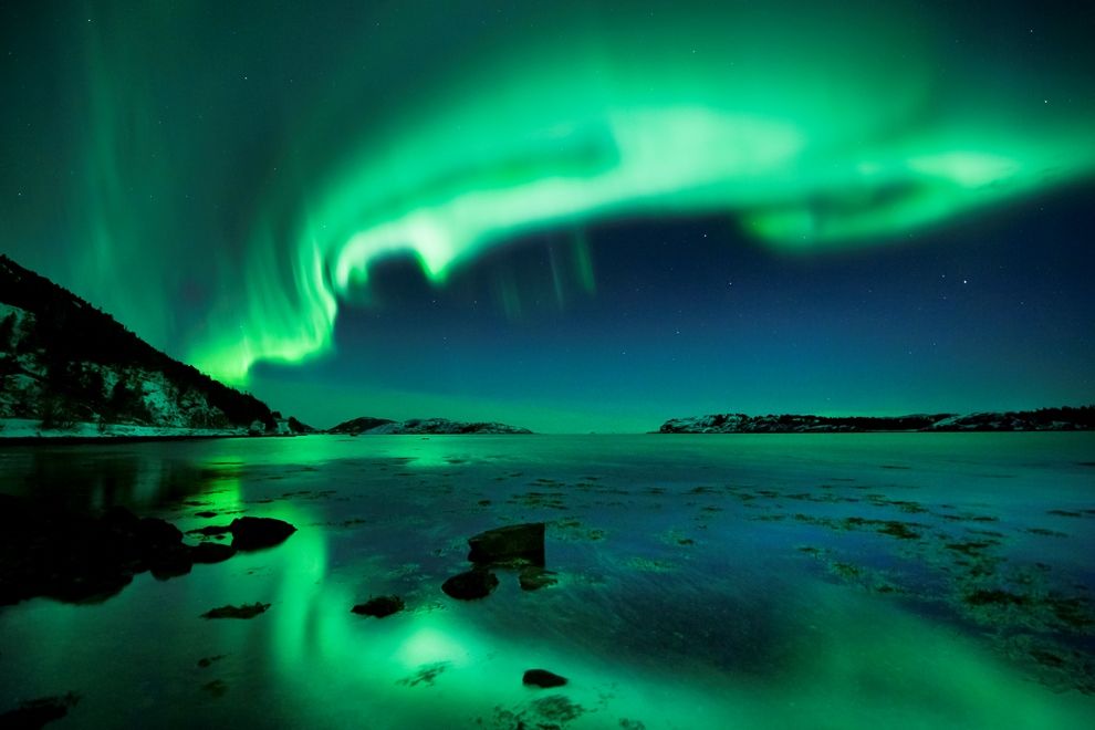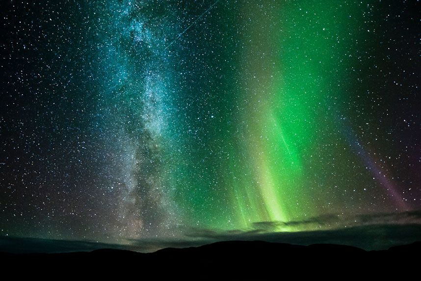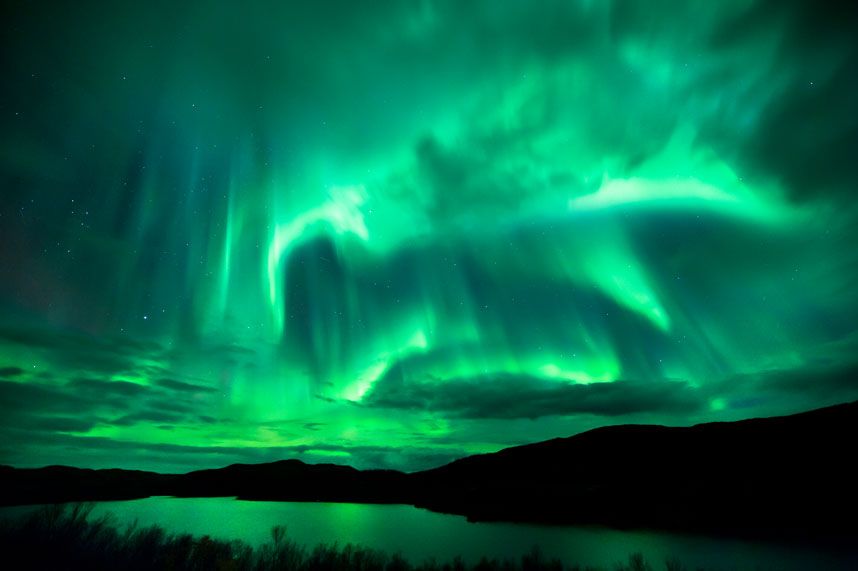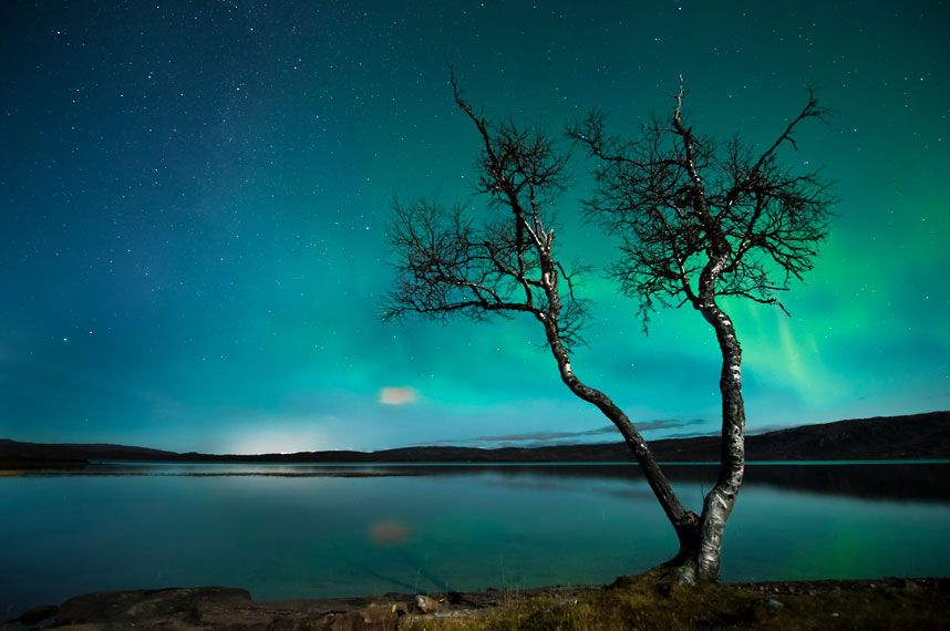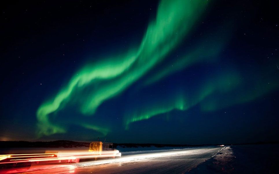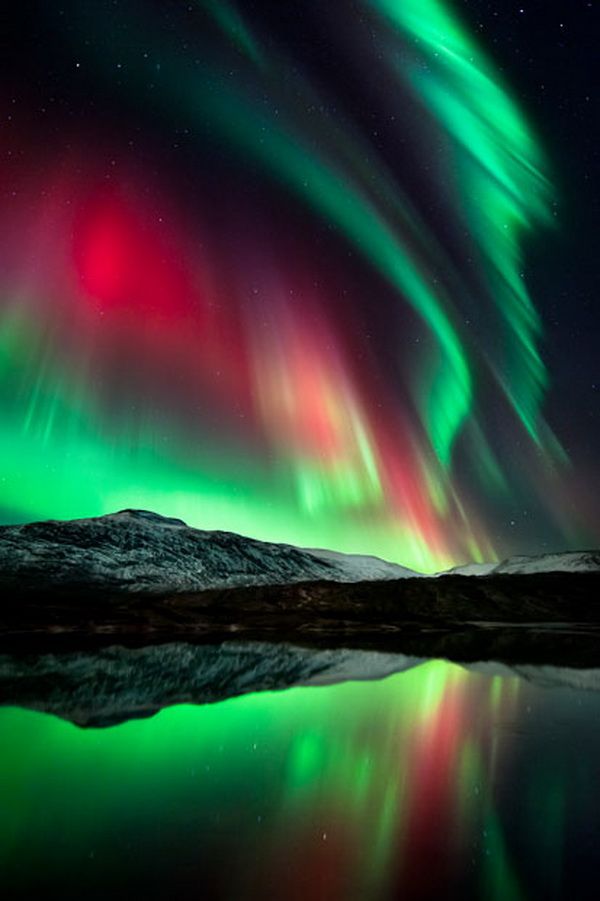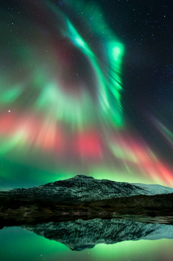 Một cực quang bay phía trên hồ Tibbitt ở phía bắc Canada hôm 7/8. Cực quang xuất hiện do những hạt mang điện tích từ mặt trời lao vào bầu khí quyển trái đất với tốc độ cực lớn. Trong quá trình di chuyển, những hạt mang điện tích đâm vào các nguyên tử oxy và nitơ khiến mức năng lượng của chúng tăng lên. Kết quả là những nguyên tử nitơ và oxy phát ra ánh sáng nhiều màu sắc.