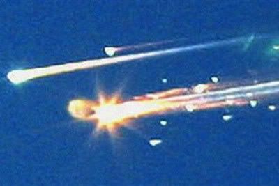 Tàu Columbia nổ tung khi quay trở lại bầu khí quyển trái đất với tốc độ 5,6 km/s. Ảnh: Reuters.