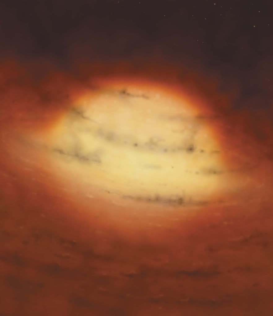 Trong hàng chục ngàn năm, thể tích của khối cầu tiếp tục giảm từ mọi hướng của chiếc kén. Bây giờ, lõi của cụm cầu đã có một hình dạng xác định – một quả bóng khổng lồ với kích thước tương đương quỹ đạo của Diêm Vương Tinh, tuy nhiên bề mặt của nó vẫn còn quá lạnh để phát ra ánh sáng quang học. Nhưng cuối cùng, khu vực trung tâm của nó cũng ấm lên đáng kể - khoảng 10 000 độ C và các phân tử đã chia thành các nguyên tử Hydro.