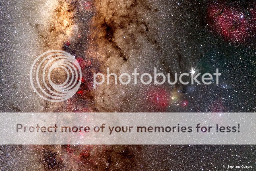 Bức ảnh chụp một vùng trời lấp lánh sao nằm trong khu vực của chòm sao Bọ Cạp (Scorpius). Để có được bức ảnh kì diệu này, tác giả Stéphane Guisard đã sử dụng một máy ảnh số chuyên nghiệp, một bộ lọc màu và một hệ thống xử lý ảnh hiện đại. Chạy dọc phía bên trái là ánh sáng rực rỡ của dải Ngân Hà. Nếu nhìn bằng mắt thường bạn sẽ khó mà phân biệt nổi những ngôi sao nhiều màu sắc, những đám mây hiđro hồng nhạt, những "viền" tối dài đan xen nhau trong đĩa sáng vũ trụ này. Cắt chéo dải Ngân Hà tại vị trí gần trung tâm bức ảnh là một dải bụi tối rất mảnh mang tên "Dark River" (Dòng Sông Tối). "Con sông bé nhỏ" này nối tới vài ngôi sáng sáng phía bên phải, đây là phần đầu và càng của chòm sao Bọ Cạp (Scorpius). Ngôi sao màu vàng nhạt thấp thoáng trong làn bụi mỏng chính là Antares. Phía trên Antares là thiên thể rất sáng: sao Mộc - một hành tinh trong hệ Mặt Trời. Rải rác trong bức ảnh là những tinh vân phát xạ màu đỏ và một vài tinh vân phản xạ màu xanh dương.