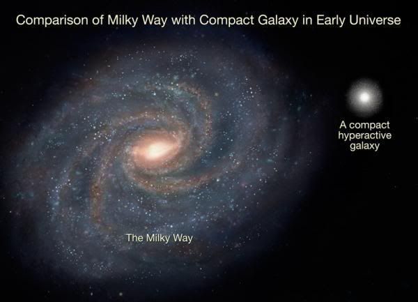 So sánh thiên hà Milky Way và một thiên hà compact thời kì sơ khai vũ trụ